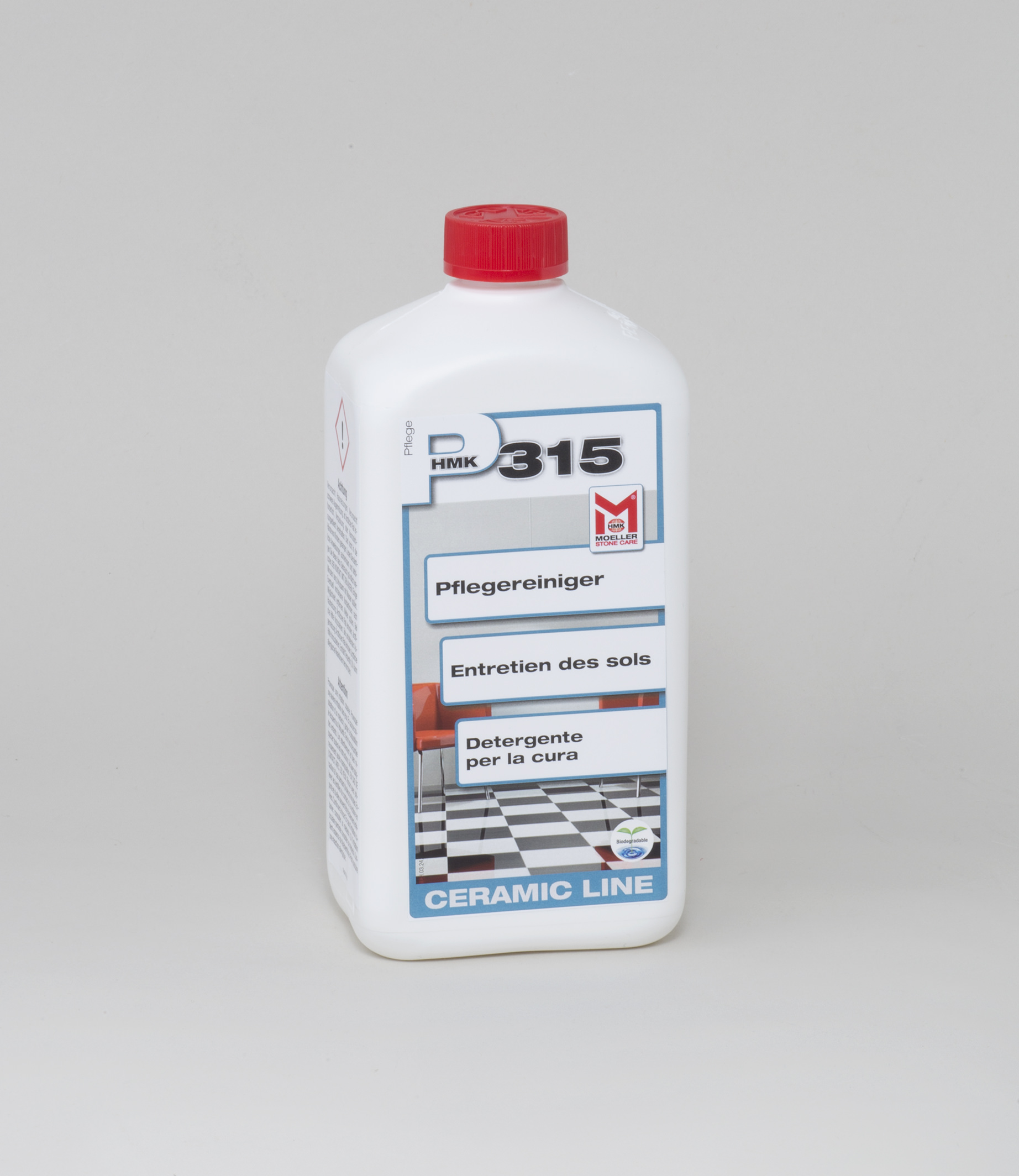 Milder Unterhaltsreiniger, der in einem Arbeitsgang alle Feinsteinzeug-Oberflächen reinigt und pflegt. Die wasserlöslichen Inhaltsstoffe verhindern Schlierenbildung und bauen bei richtiger Dosierung keine Schichten auf.