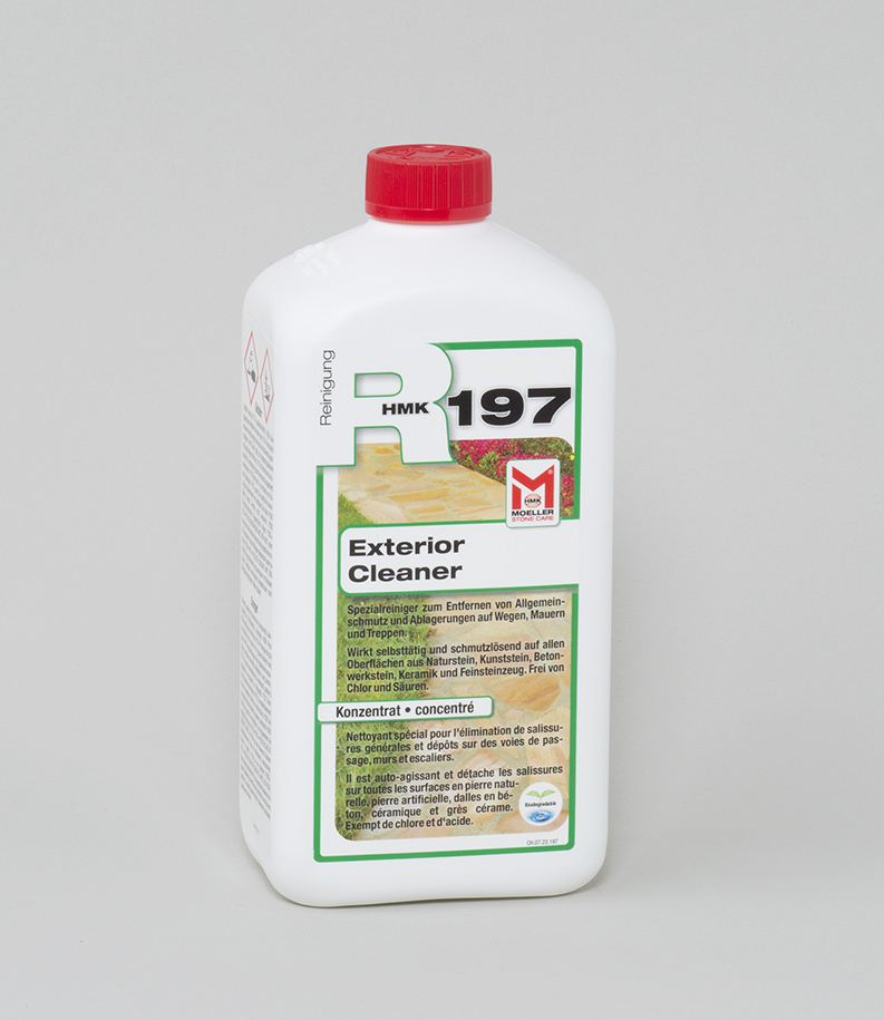 HMK R197 ist ein chlor- und säurefreier Spezialreiniger (Konzentrat) für den Aussenbereich. Er löst und beseitigt mühelos Allgemeinschmutz und Ablagerungen von Aussenflächen wie Wegen, Mauern, Treppen, Terrassen, Einfahrten aus Naturstein, Kunststein, Betonwerkstein, Keramik und Feinsteinzeug.